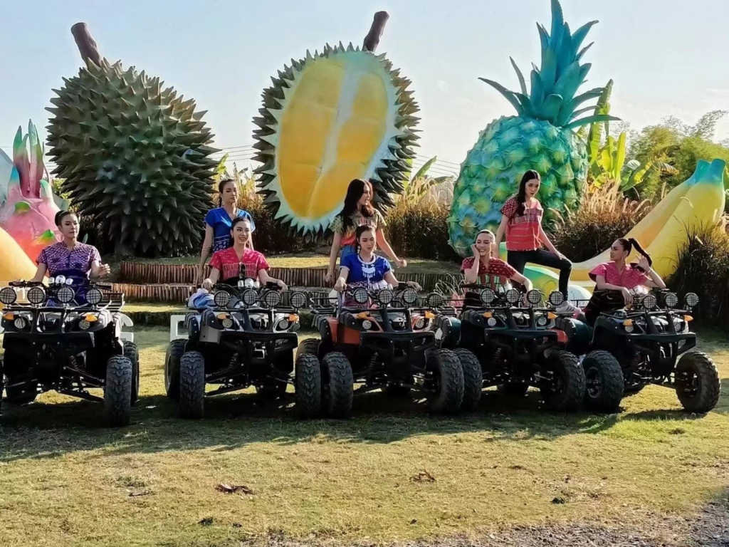 ATV四輪驅動越野車 :莊園主人的心頭愛好,大大的輪子特別適合在山谷騎乘,安全起見,請跟隨教練人員安排練習加速,煞車,我們在此體驗騎乘一小圈。