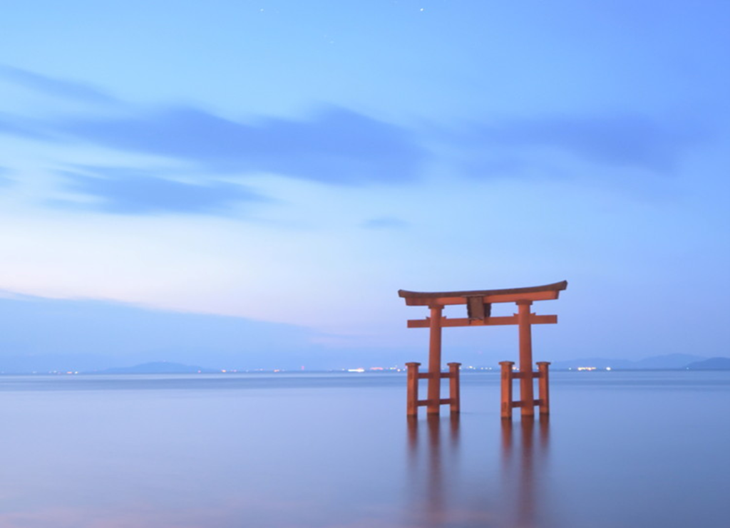 【白鬚神社】白鬚神社豎立在湖上的紅色鳥居,有「近江的嚴島」之美稱。以祈求長壽、長生的神明為主,是近江地區最古老的神社,同時也是日本全國300多家白鬚神社的總社。大約建於1900年前,擁有近江最古老的歷史,已被列為日本遺產之一。這裡風景迷人,浮出水平線的沖島構成背景,漁船穿行在湖中鳥居之間。傍晚時,鳥居將點亮燈光,景色尤美。